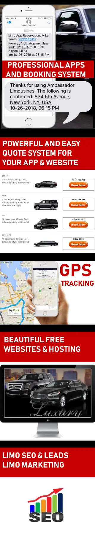 Take advantage of free features: SMS reservations, GPS Tracking, Automated Quotes, free Web (landing) page, download badges for your website and Online Payments.